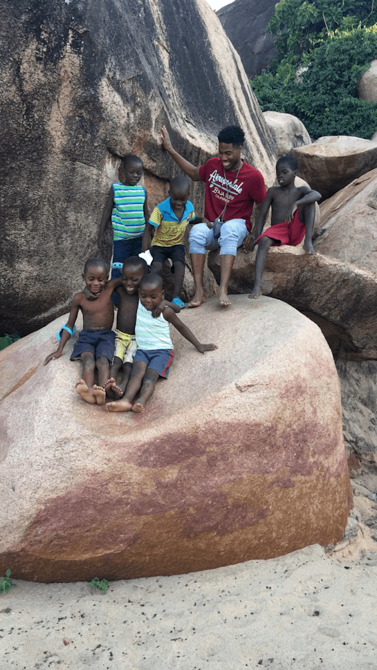 After the crocodile farm we headed to Sunbird Livingstonia to use their beach access. This “resort” is gated and located along Lake Malawi. It was unreal to drive through all of these remote areas and villages and then BAM … here you are at a wealthy resort where many come to vacation. Kristoff and I were racing each other along the beach, as four men in suits, underneath an umbrella, with their feet in the sand where talking. We just went running right on by. There were sweet village boys there playing, and we chased them and tickled them lots. K had fun climbing the boulders!