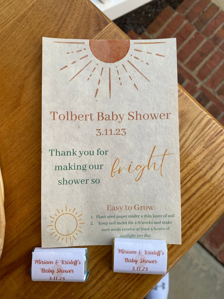 Our incredible fam threw us a baby shower to celebrate our growing family on Saturday, March 11th. ❤ We had around 40 guests attend, so there was a lot of activity and just so much joy. From CFA chicken & yummy fruit trays to thoughtful guest party favors & amazing table stations … it was an incredible day that was well planned. The party started at 1pm and the last guests left around 9:40pm. K and I talked about the party for the rest of the month. Thank you so much, Michaela!! We love you bunches and appreciate all of the details you thought out to make our shower so special.