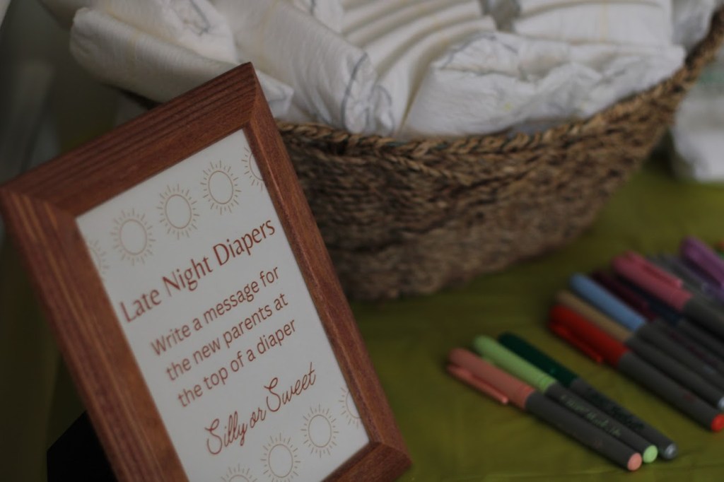 - Late night diapers — messages from family and friends on size 1 diapers! We have these in a bag in our closet to pull out as soon as he outgrows his like 15 newborn diapers we own. We are trying not to look at the messages now, but the few I’ve peaked at made me LOL.