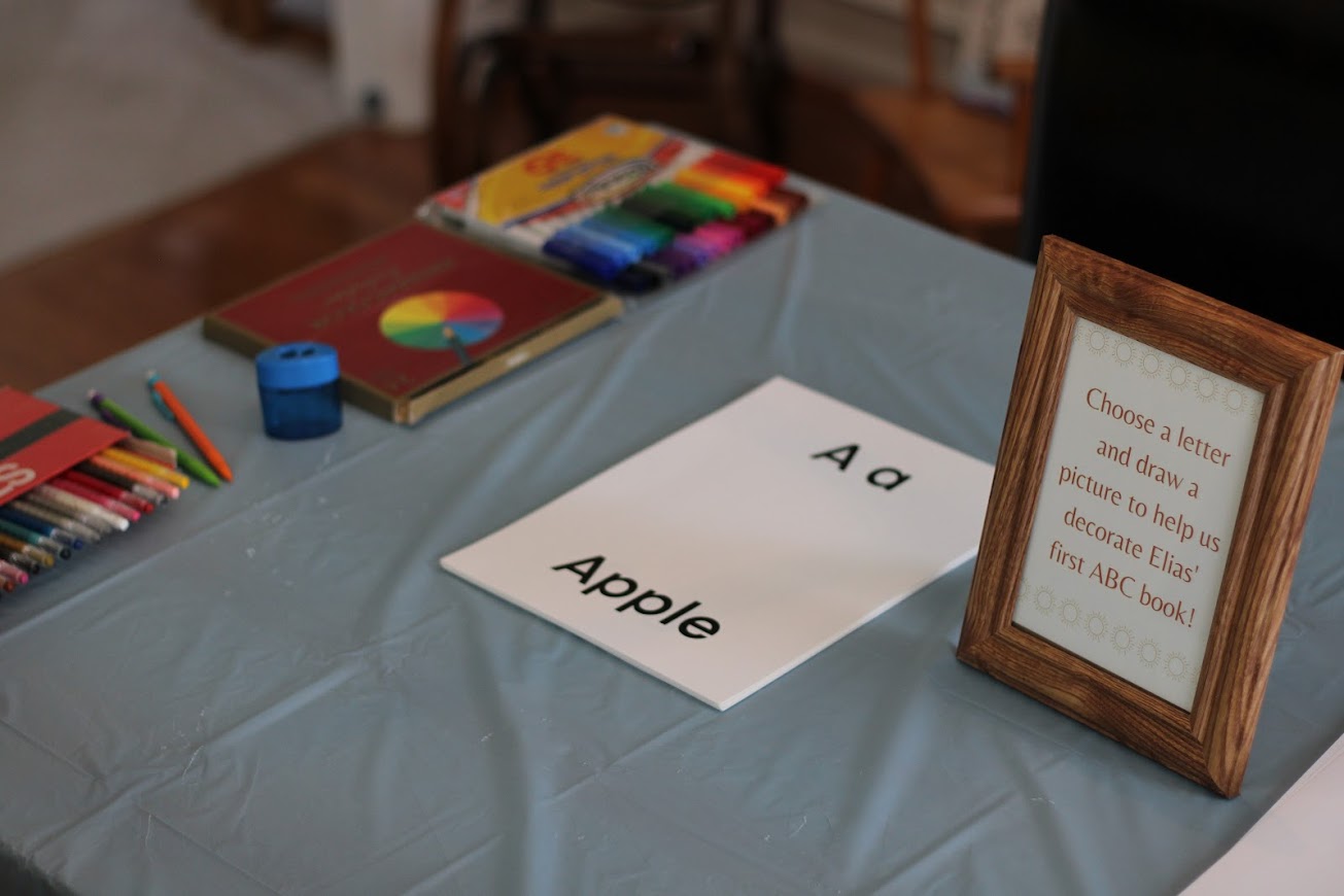 - Elias’ First ABC Book Station // Each guest illustrated a different page. We are going to laminate this, so we can always read it to him.