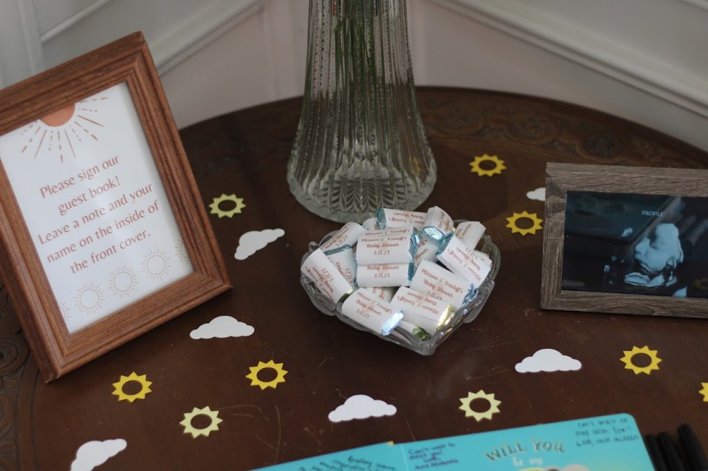 - Guest Book Sign-In with chocolate bars & ultrasound pic – Will You be my Sunshine Written by Julia Lobo (new fave book)