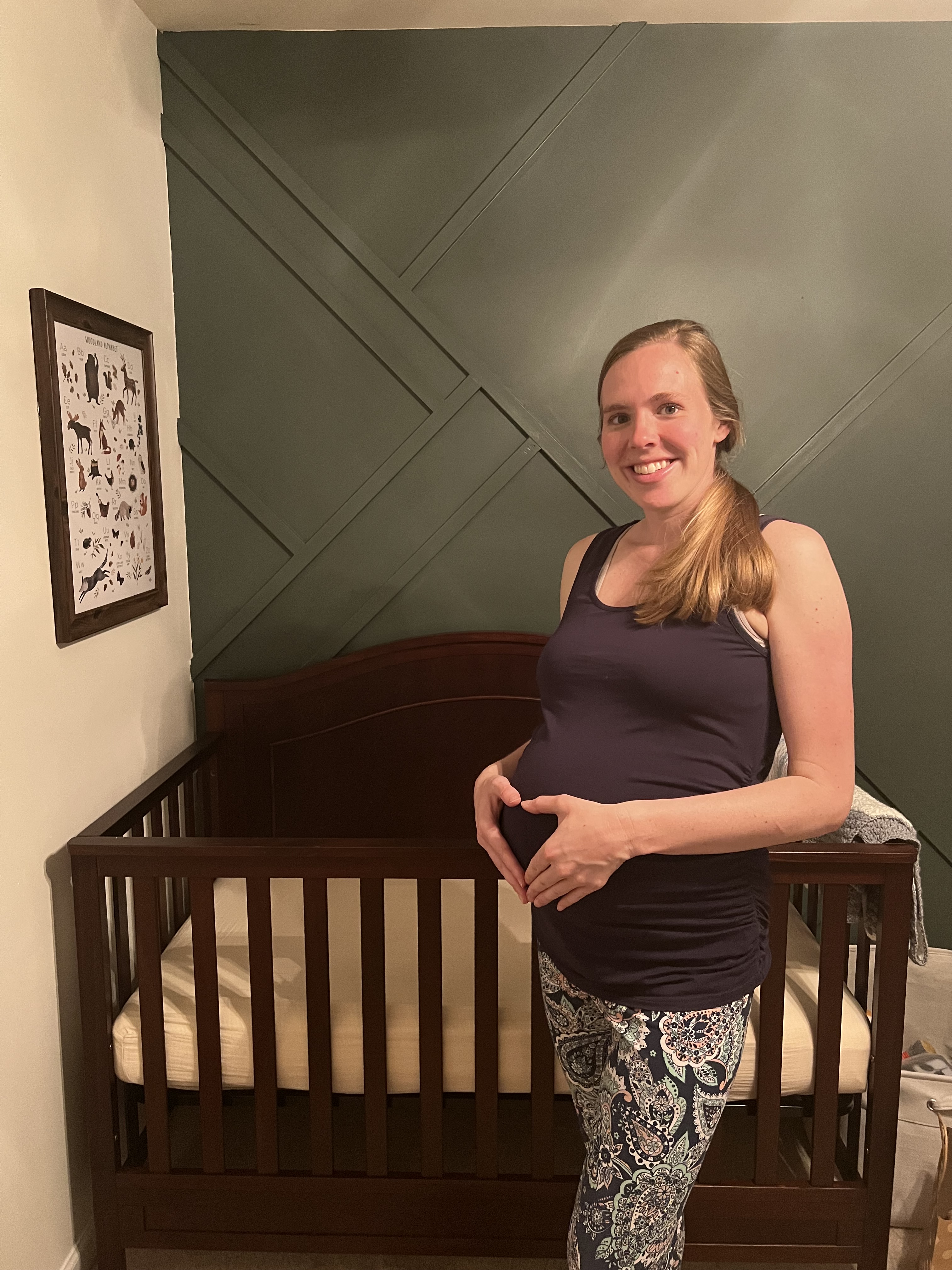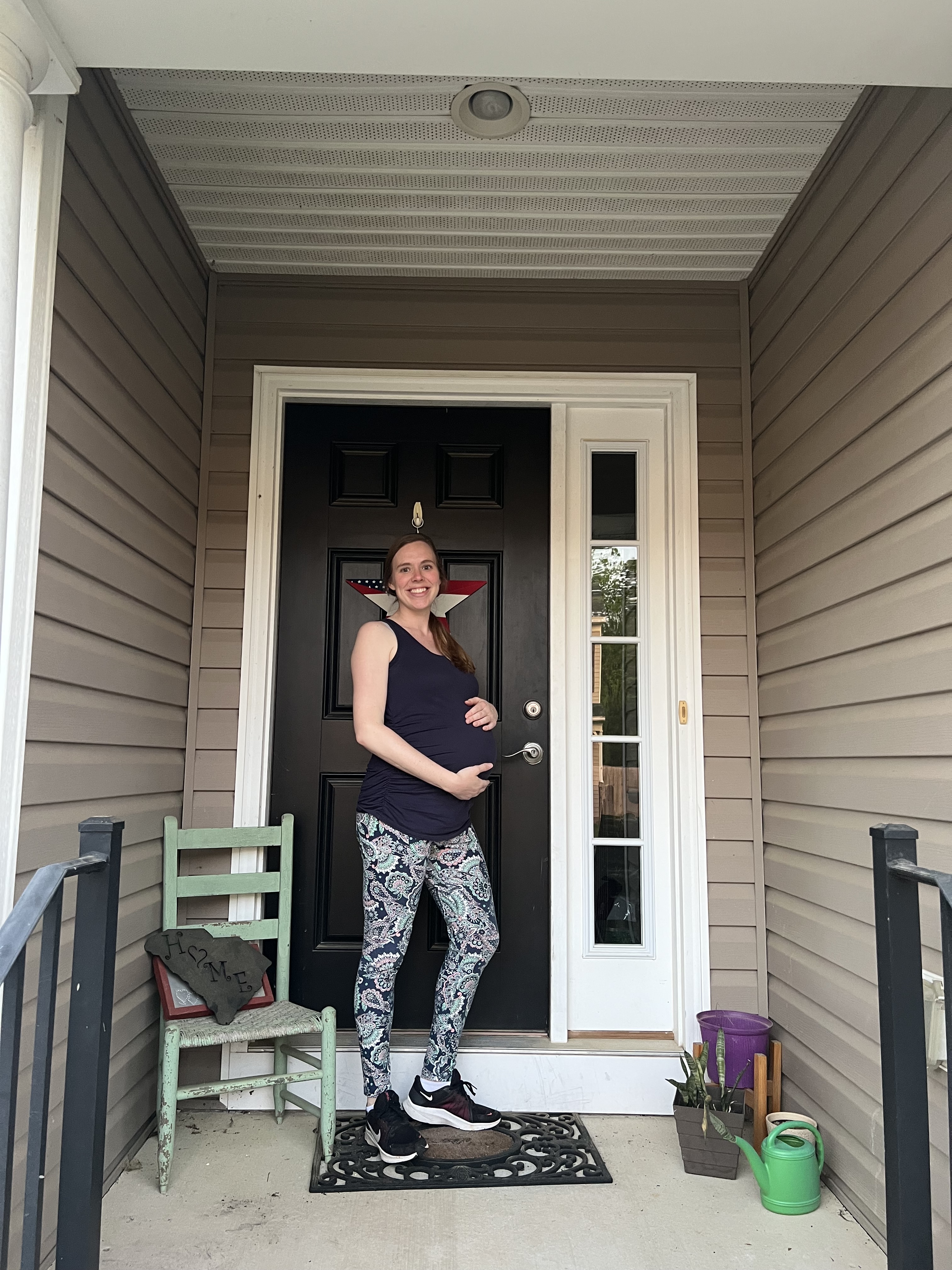 We walked two laps around our neighborhood, stopping as needed to work through the contractions. I’ll never forget K hugging me each time and kissing me through them. I then hopped in the shower, and it was INCREDIBLE. K remodeled our shower in August 2022, so it is a safe haven of ours. I pushed against the stone as needed and remember doing squats as the water washed over me. These are the last pics of me being pregnant at home:
