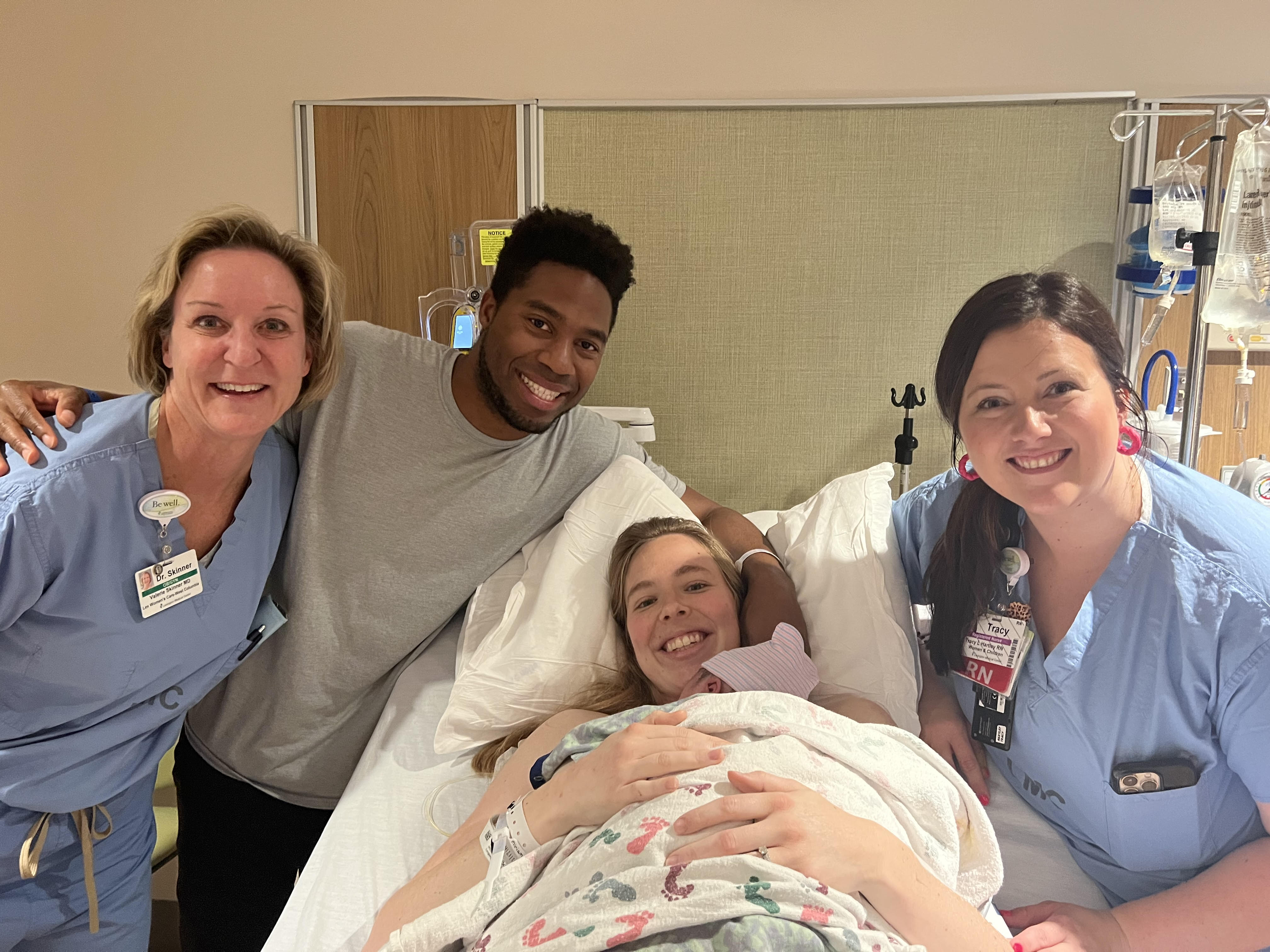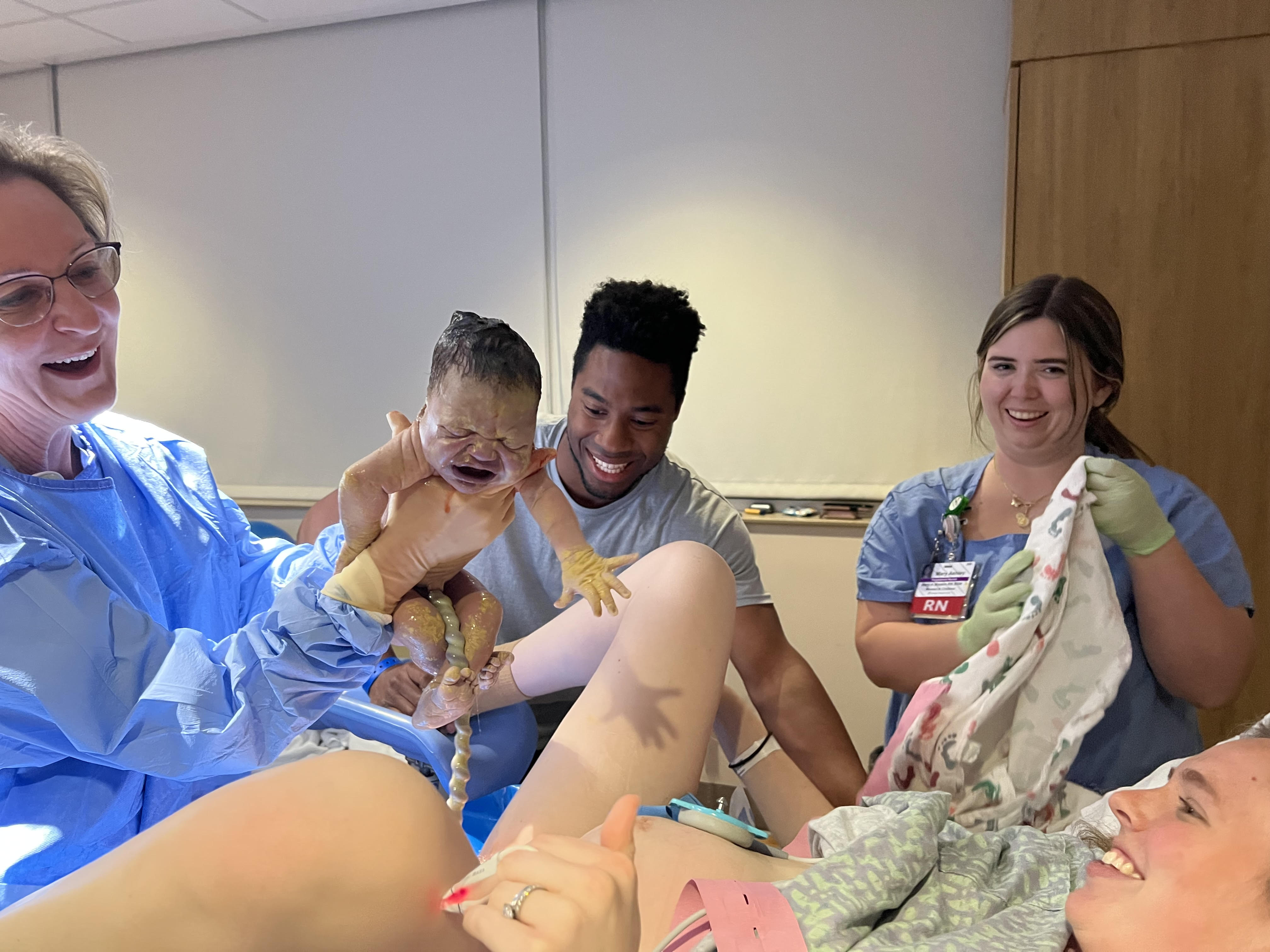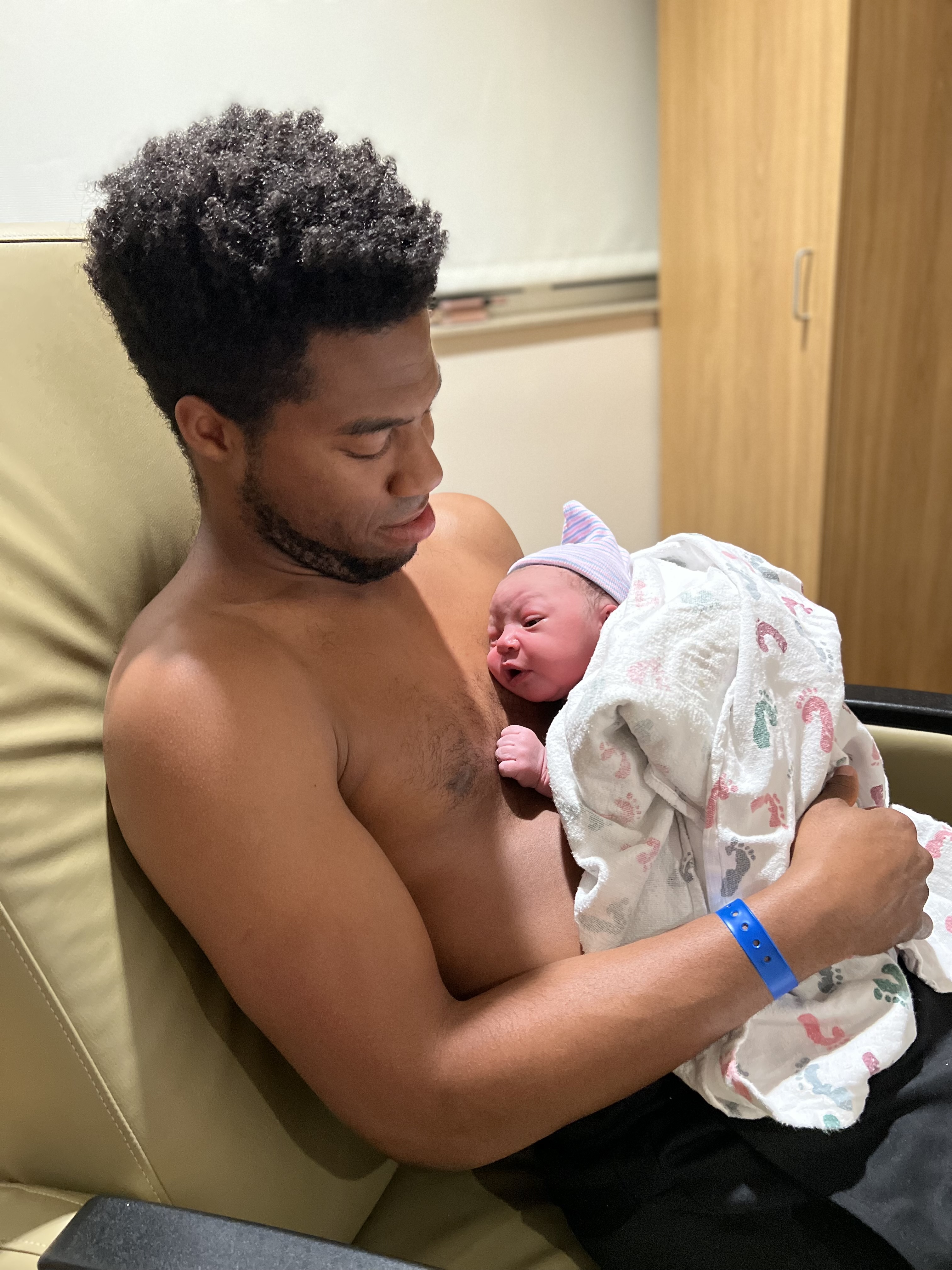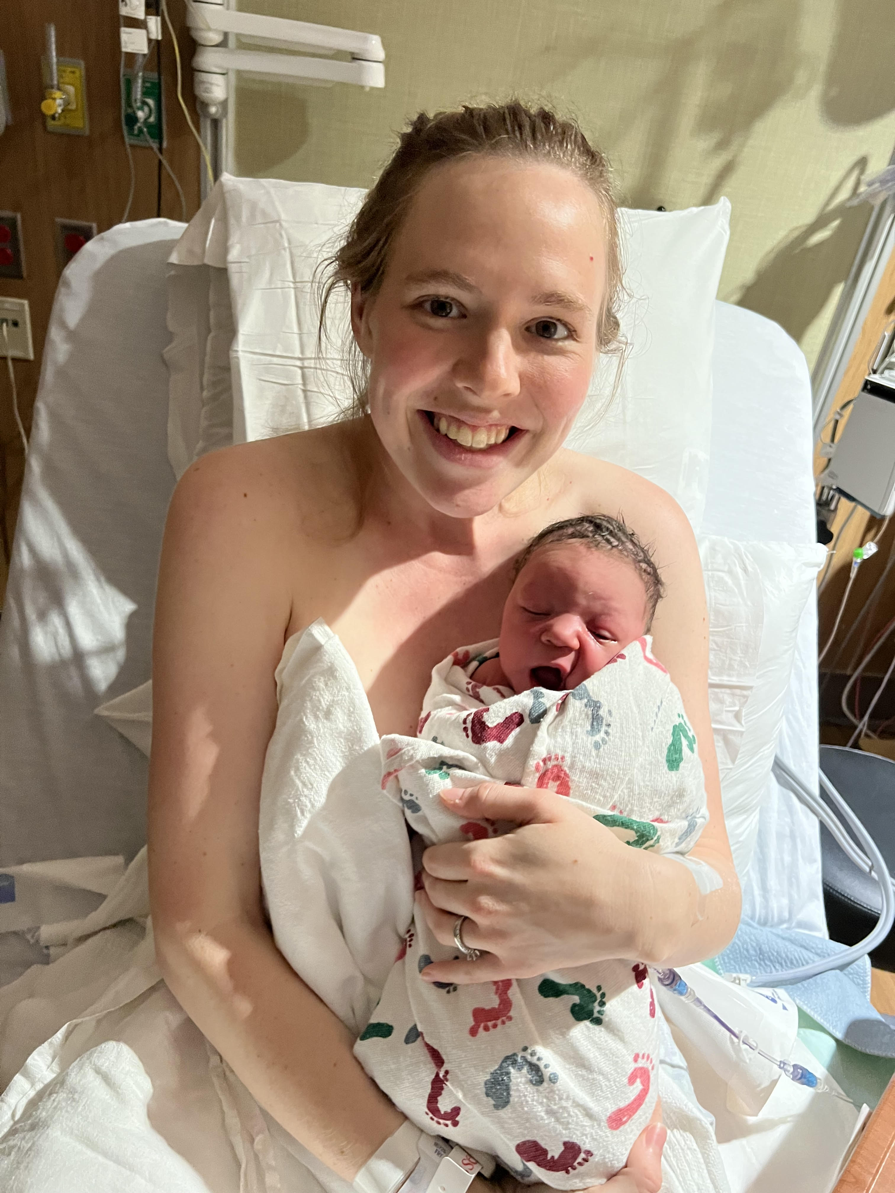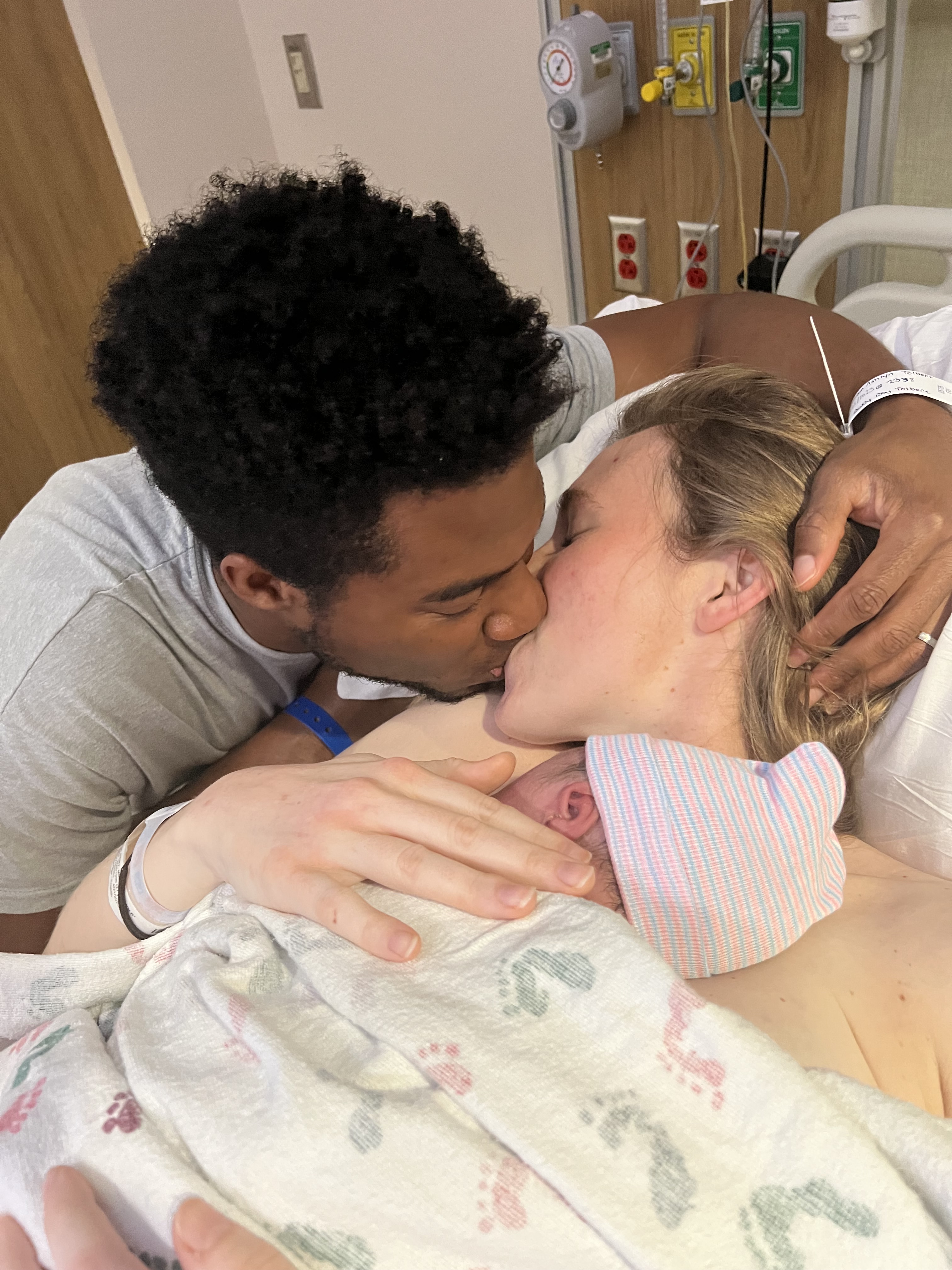 I don’t remember delivering the placenta, so that wasn’t a big deal. I do remember them performing fundal massage throughout the evening and next day. This is used to help the uterus contract back down to its usual size. I remember using the restroom about an hour after birth successfully and I was super thankful for this. We want to always remember to have the catheter removed once birth is imminent, as our nurse told us this helps with being able to pee afterwards.