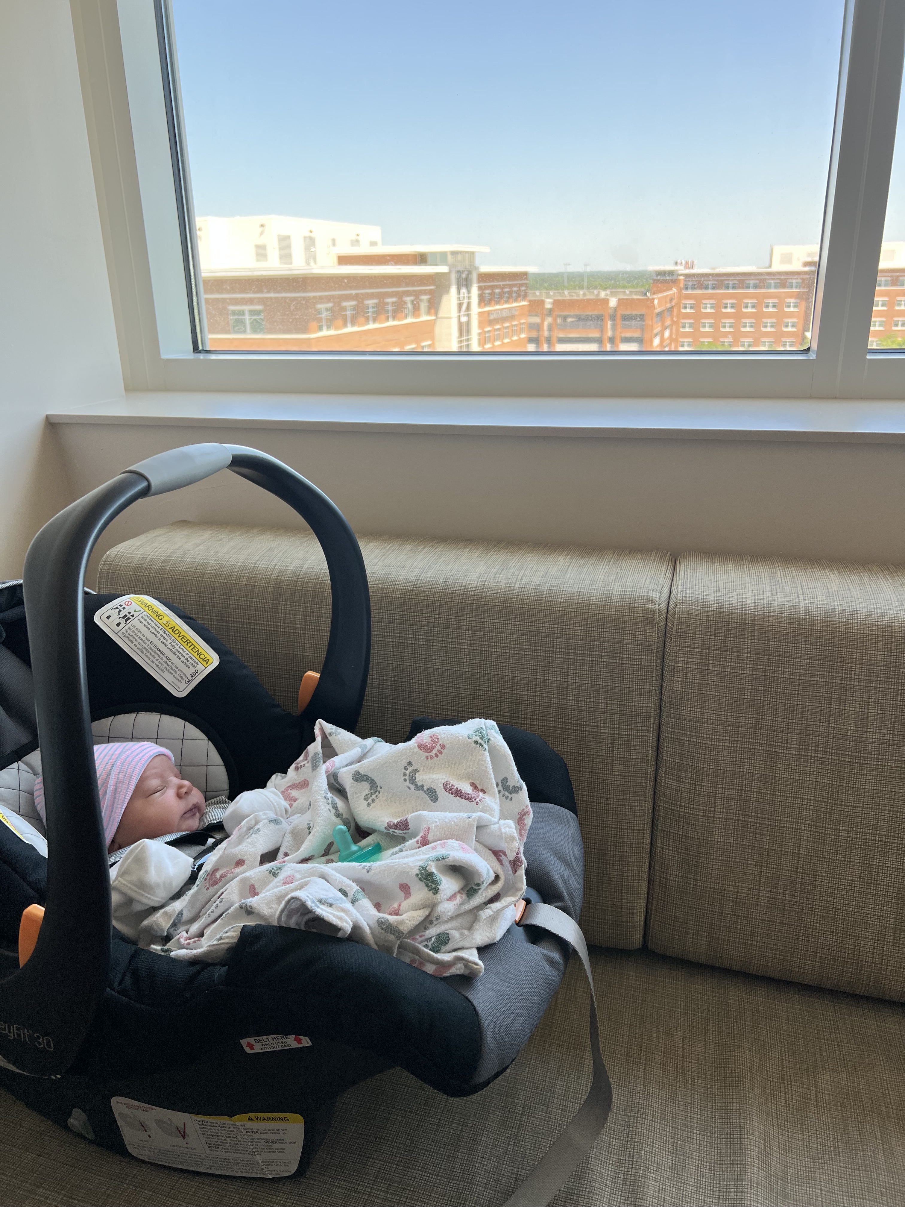 Sunday morning our dear friends Emily and Jordan visited us in the hospital. We enjoyed talking with them about the entire experience. They left after his hearing test and helped K get a lot of our belongings to the car. We then ate our final lunch in the hospital and left around 2pm.