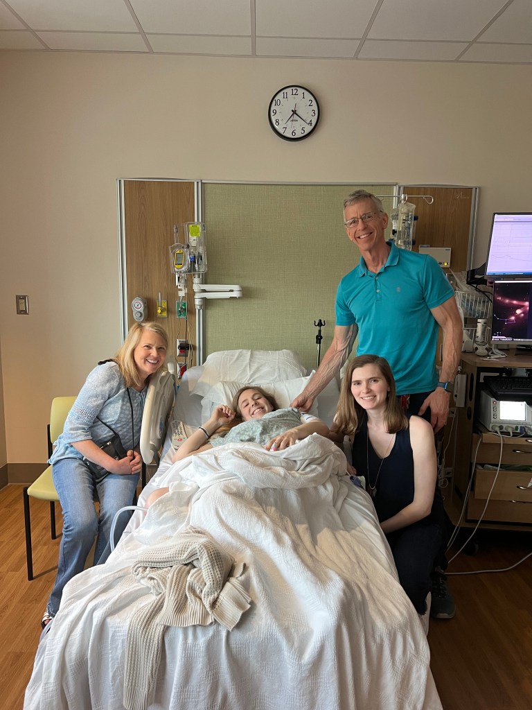Things progressed very quickly at this point forward. I was already 7cm at 5:56pm! Then mom, dad, and Michaela came walking into our labor & delivery room shortly after 7pm. Kristoff and I were surprised because we thought Kristoff would have to meet them in the lobby to grab supper. It was a really calm night at the hospital, so they let them back to be with us for a few minutes. It was wonderful to see them one last time before giving birth. Below is a photo of the four of us. ❤ There is a “no food policy”, but I snuck snacks all day long because labor is a marathon, and no food feels inhumane to me. Basically, anytime Kristoff ate, I would eat a bite or two as well. Looking back, I am so glad I did!!