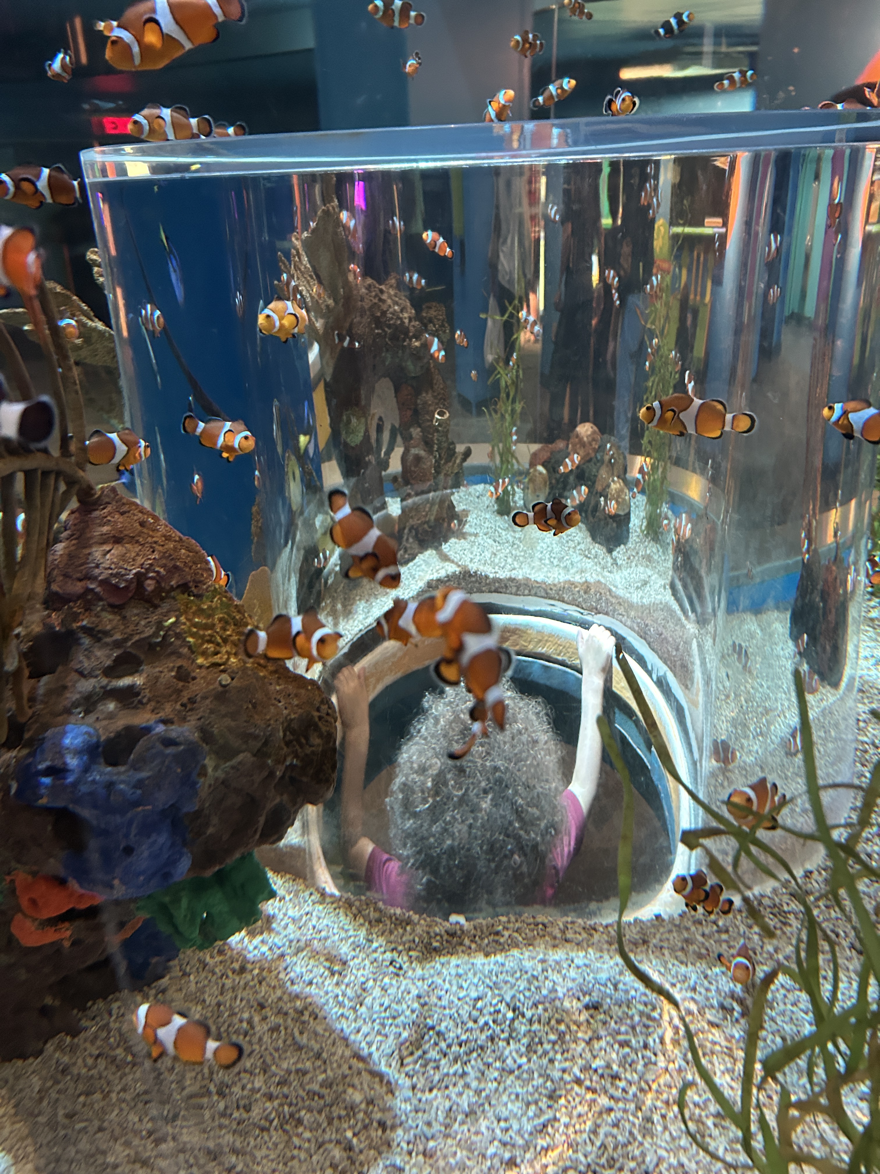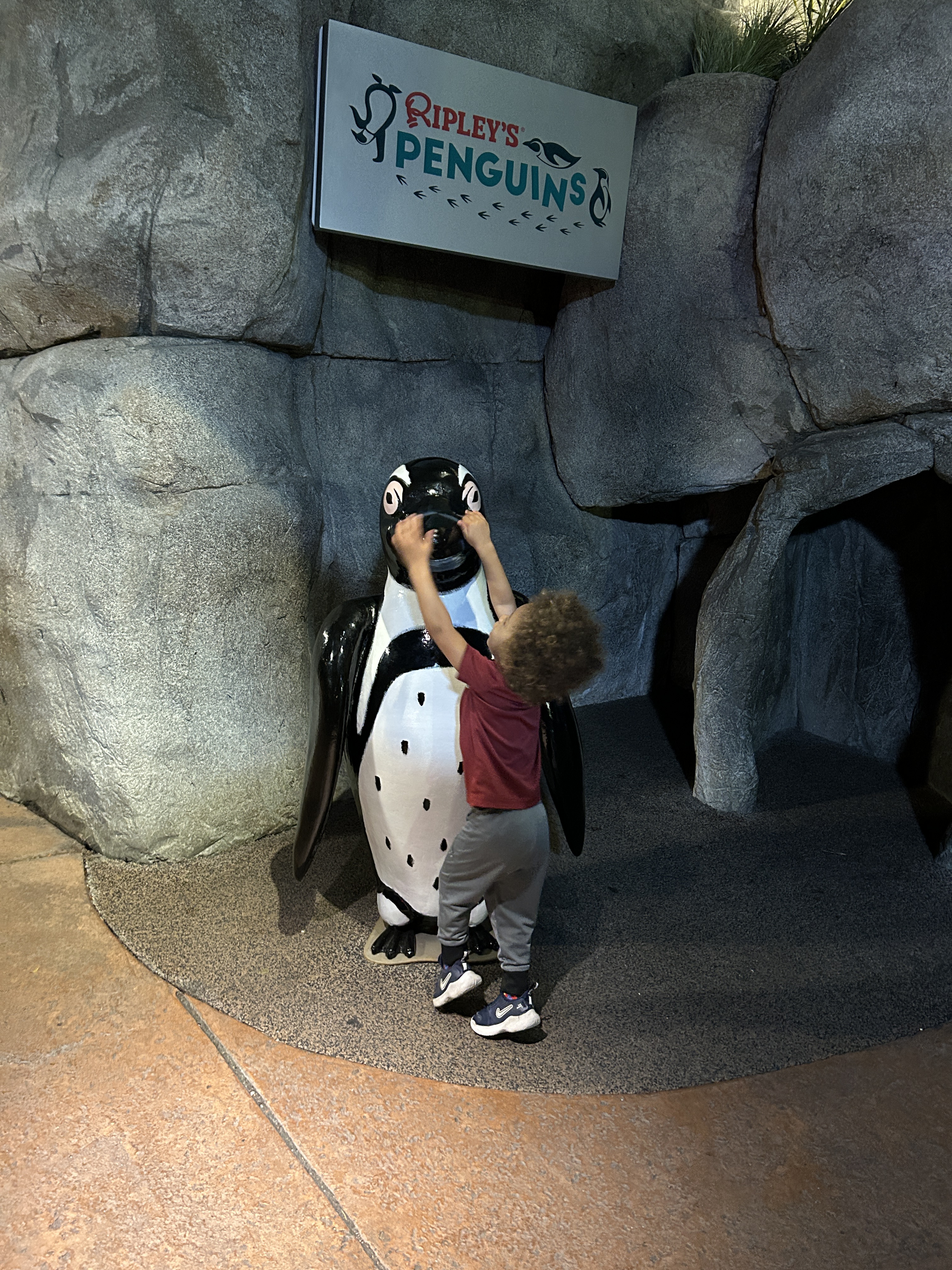 We had leftovers, so Kristoff ran them back to our hotel mini fridge (it was the perfect amount left for the three of us to have for lunch the next day after hiking over 2 miles), while Elias and I waited in front of Ripley’s Aquarium. We spent around 3 hours here and we weren’t the last to leave since they are open until 10PM on Saturdays! Ripley’s Aquarium of the Smokies was amazing and worth the money. The shark tunnel with a moving conveyor belt through it, the “touch a ray bay,” playground, jelly fish touch tank, and penguin exhibit that allowed our 2yr old to pop up “inside” the exhibit were a few of the highlights. Elias got to touch his first jellyfish this past summer at the DC Aquarium and touch a ray at the SC Aquarium, so this experience brought both back to the surface for me. Fun times!